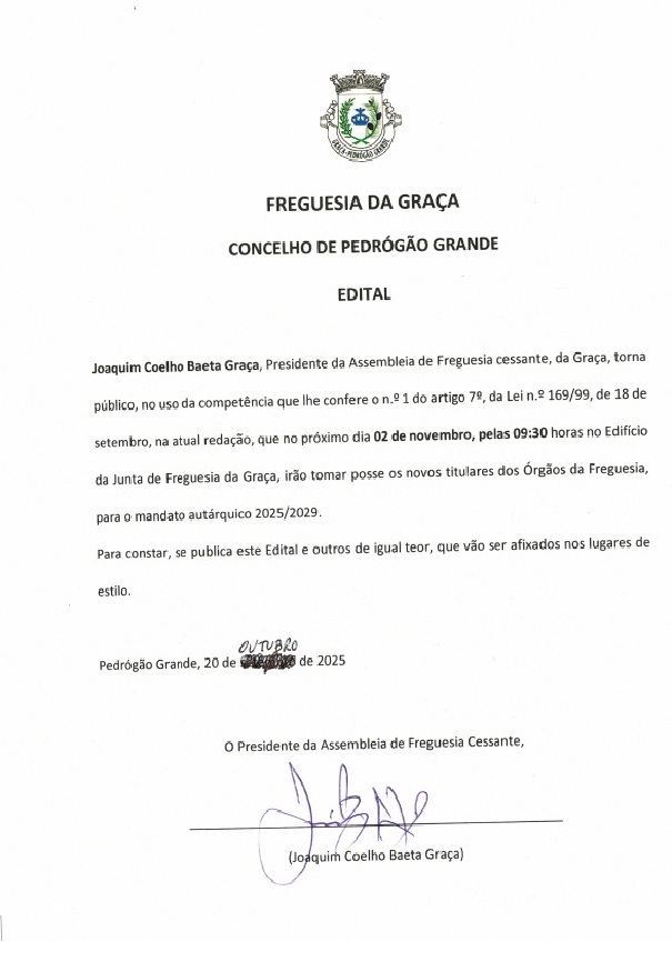 EDITAL TOMADA DE POSSE MANDATO AUTÁRQUICO 2025/2029